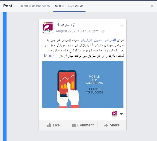 برای مشاهده ی ظاهر و ساختار نمایش پست در حالت موبایل روی تب mobile preview کلیک کنید تا چیزی شبیه عکس زیر مشاهده کنید: