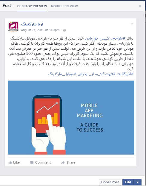 در همین مکان، اگر روی لینک مروبوط به پست، کلیک کنید، پست را نمایش می دهد. شما می توانید حالت و ساختار پست بعد از انتشار را در قالب موبایل و دسکتاپ مشاهده کنید.