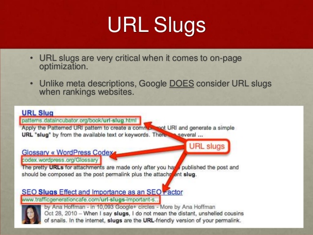 توجه داشته باشید که URL Slugs در نتایج جستجو ها نمایش داده می شود