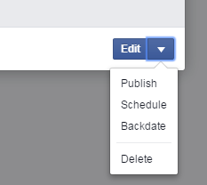 علاوه بر ویرایش، می توانید با استفاده از مثلث رو به پایین، که در بلا مشاهده می کنید، حالت محتوا را تغییر داده و سریعا نسبت به انتشار و یا زمان بندی آن اقدام کنید. برای اینکه بتوانید یک پست را زمانبندی کنید می توانید آموزش زمانبندی کردن مطالب و پست در فیس بوک را ببینید.