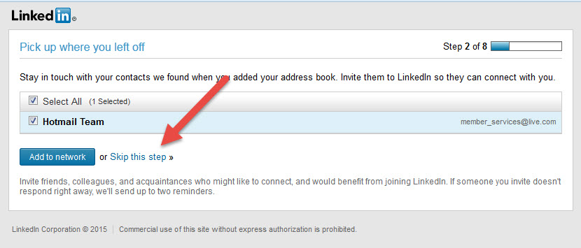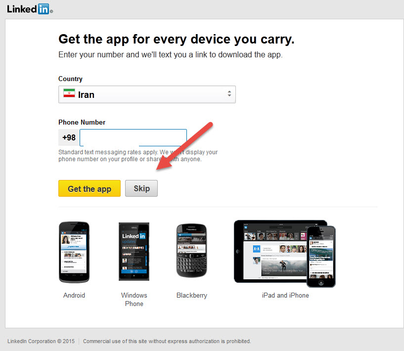 در مرحله ی بعد هم مطابق فلش، skip را انتخاب کنید و ثبت نام خود را نهایی کنید :
