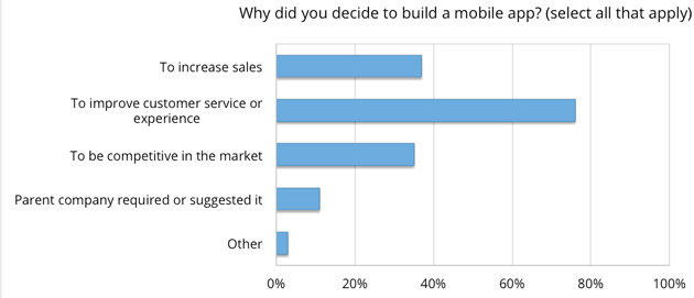 همانطور که در تصویر بالا مشاهده می کنید، حدود 76 درصد از فروشگاه ها تنها به منظور توسعه بهبود تجربه ی کاربری مشتریان خود، و ایجاد تنوع و راحتی بیشتر برای خرید، نسبت به طراحی اپلیکیشن فروشگاهی اقدام می کنند. طبق مطالعات دیگری که در آمازون منشتر شده است، 71 درصد از بازاریابان، نیز با تولید و ساخت اپلیکیشن فروشگاهی موبایلی برای افزایش تجربه و رضایت مشتریان موافقت دارند و این روال را در کسب و کار خود نیز وارد کرده اند.
