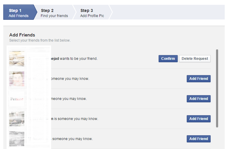 در تب اول به شما افرادی نمایش می دهد که ممکن است آن ها را بشناسید. می توانید آن ها را با add friend به لیست دوستان بیفزایید یا اینکه از skip استفاده کنید و وارد تب دوم شوید: